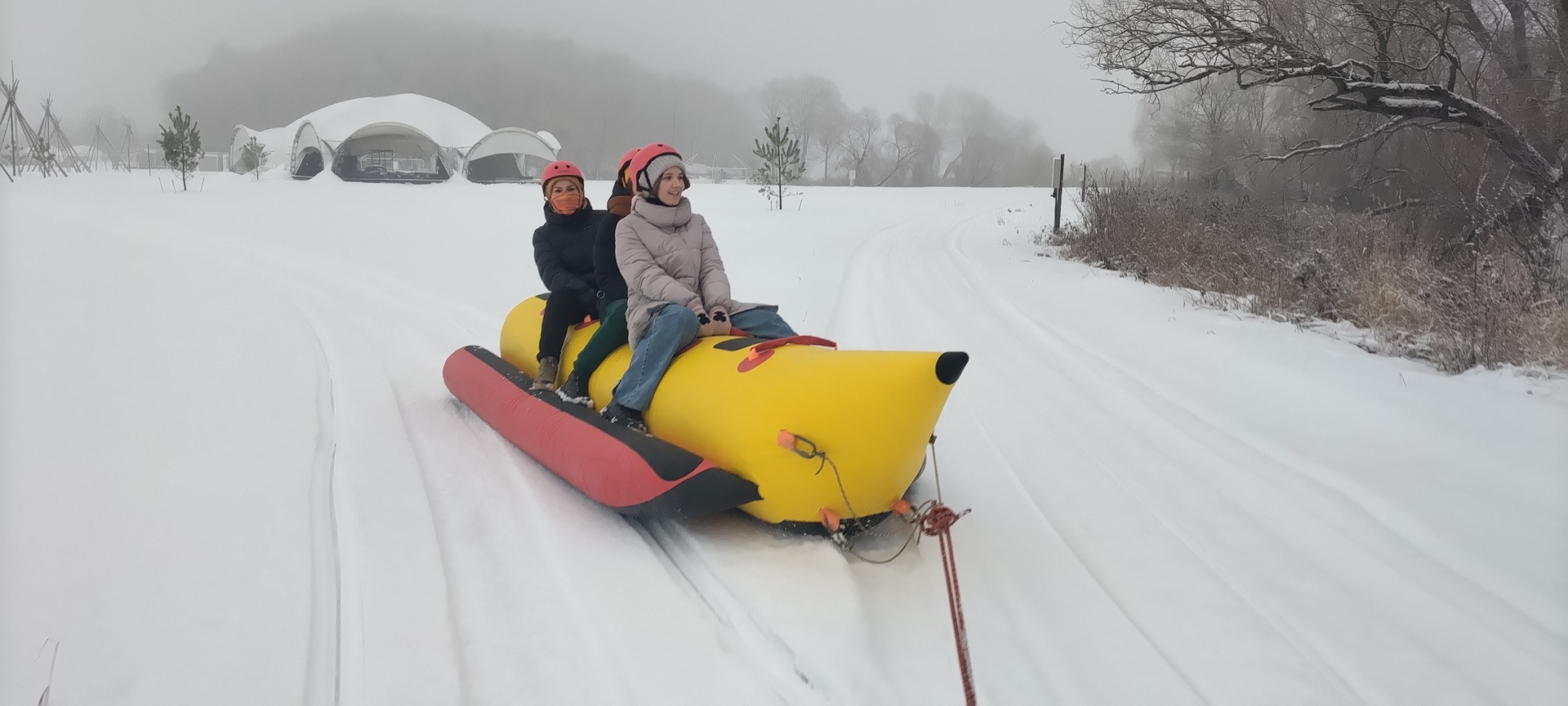 Т-парк работает круглый год и каждый день! В роскошном зимнем лесу гостей парка ждут лыжные маршруты, горки, снежные крепости, катание на зимнем банане, веселые костры и горячий сбитень!